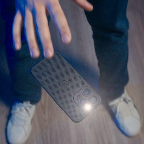 地面に置いたスマホが転がったり光ったり、最後は浮き上がりマジシャンがキャッチします!