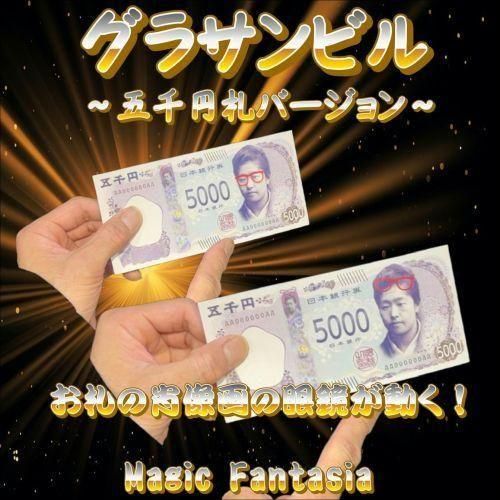 お札の肖像画の眼鏡が動きます!こちらは新五千円札バージョンです!